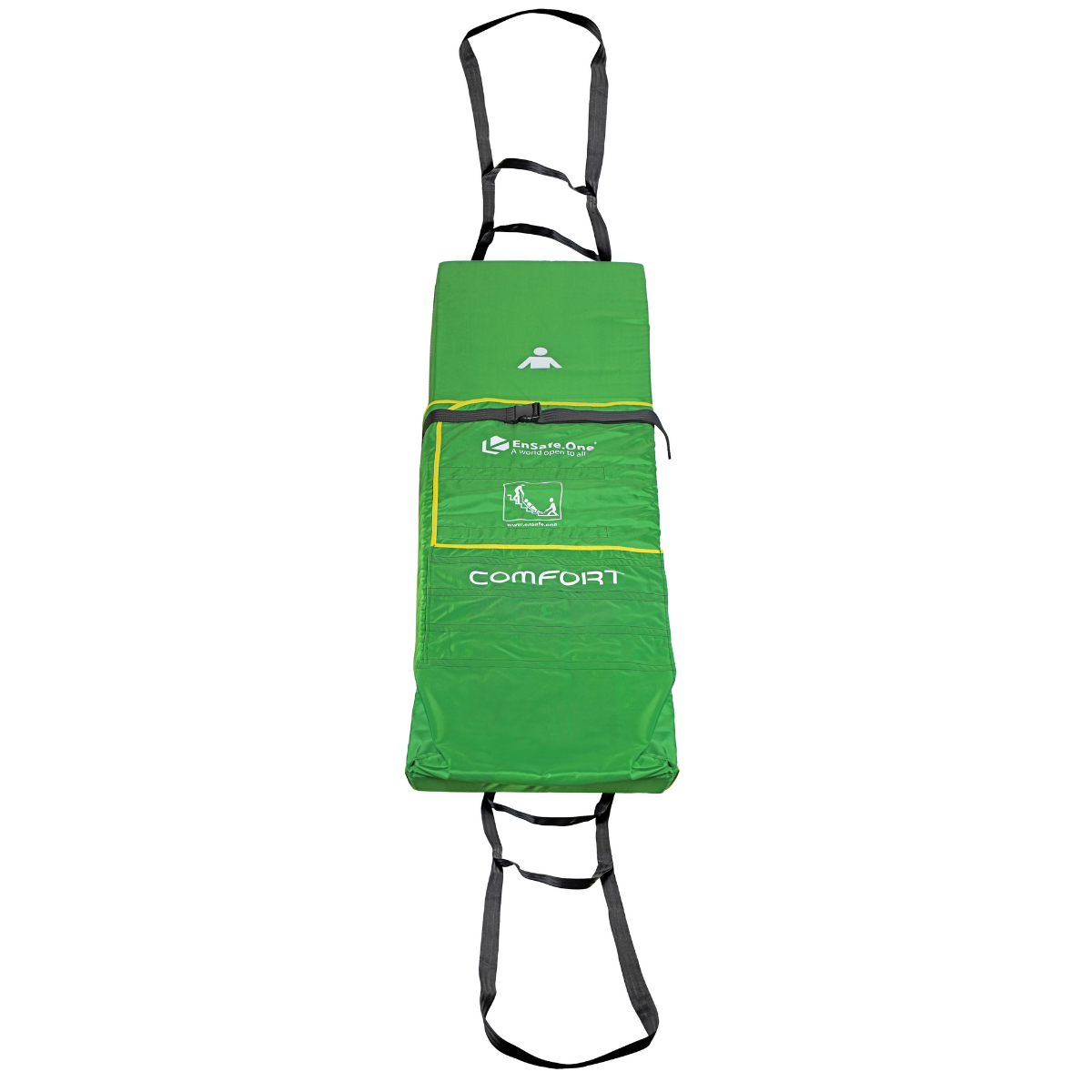 Einzigartig in der Handhabung sind die Zugbänder – je ein langes und ein kurzes Band an Kopf- und Fußseite. Die Kombination aus langem und kurzem Zugband an Kopf- und Fußseite erlaubt es, die Comfort Evakuierungsmatratze aus verschiedenen Positionen heraus effektiv zu manövrieren und die Zugkräfte optimal zu verteilen. Durch diese Kombinationen lässt sich die Comfort Evakuierungsmatratze sowohl auf Treppen als auch auf langen Fluren stabil halten. Zudem verfügt die Comfort Evakuierungsmatratze über extra starke Klettverschlüsse, die selbst unter Zugbelastung zuverlässig halten. Für die sichere Fixierung der zu rettenden Person ist die Matratze zusätzlich mit Sicherheitsgurten ausgestattet.
