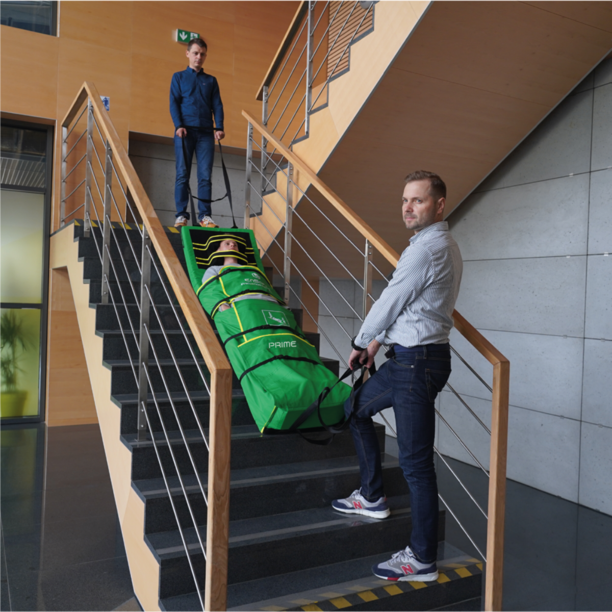 Die PRIME Evakuierungsmatratze setzt den Industriestandard in puncto Sicherheit und Komfort neu. Sie ist speziell für anspruchsvolle Evakuierungsszenarien konzipiert, die höchste Stabilität erfordern, und bietet eine beeindruckende Traglast von 210 kg. Damit stellen Sie sicher, dass Sie auch Personen mit höherem Gewicht sicher und würdevoll transportieren können. Durch die Bedienung von zwei Personen wird der zu Evakuierende sicher über Treppen und Flure transportiert. Die PRIME Evakuierungsmatratze bietet eine zuverlässige und effiziente Lösung, um liegende Personen sicher aus Gefahrenzonen zu bringen, ohne dass eine schmerzhafte oder gefährliche Umlagerung notwendig wird. Denn bei vielen pflegebedürftigen oder verletzten Personen kann eine aufrechte Sitzposition (wie in einem Evakuierungsstuhl) oder eine unsachgemäße Bewegung zu Sekundärverletzungen oder gesundheitlichen Komplikationen führen.